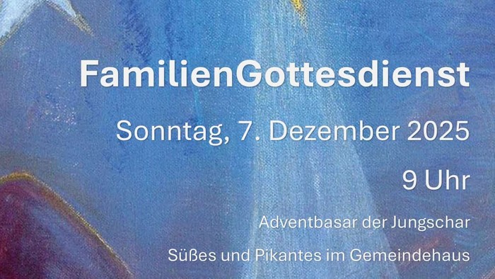 Wir laden herzlich ein zum Familien-Gottesdienst am Sonntag, 7. Dezember um 9 Uhr.