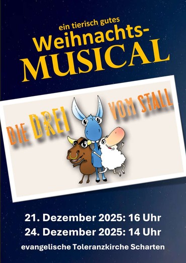 Erlebt das Weihnachts-Musical „Die Drei vom Stall“ in der Toleranzkirche Scharten!